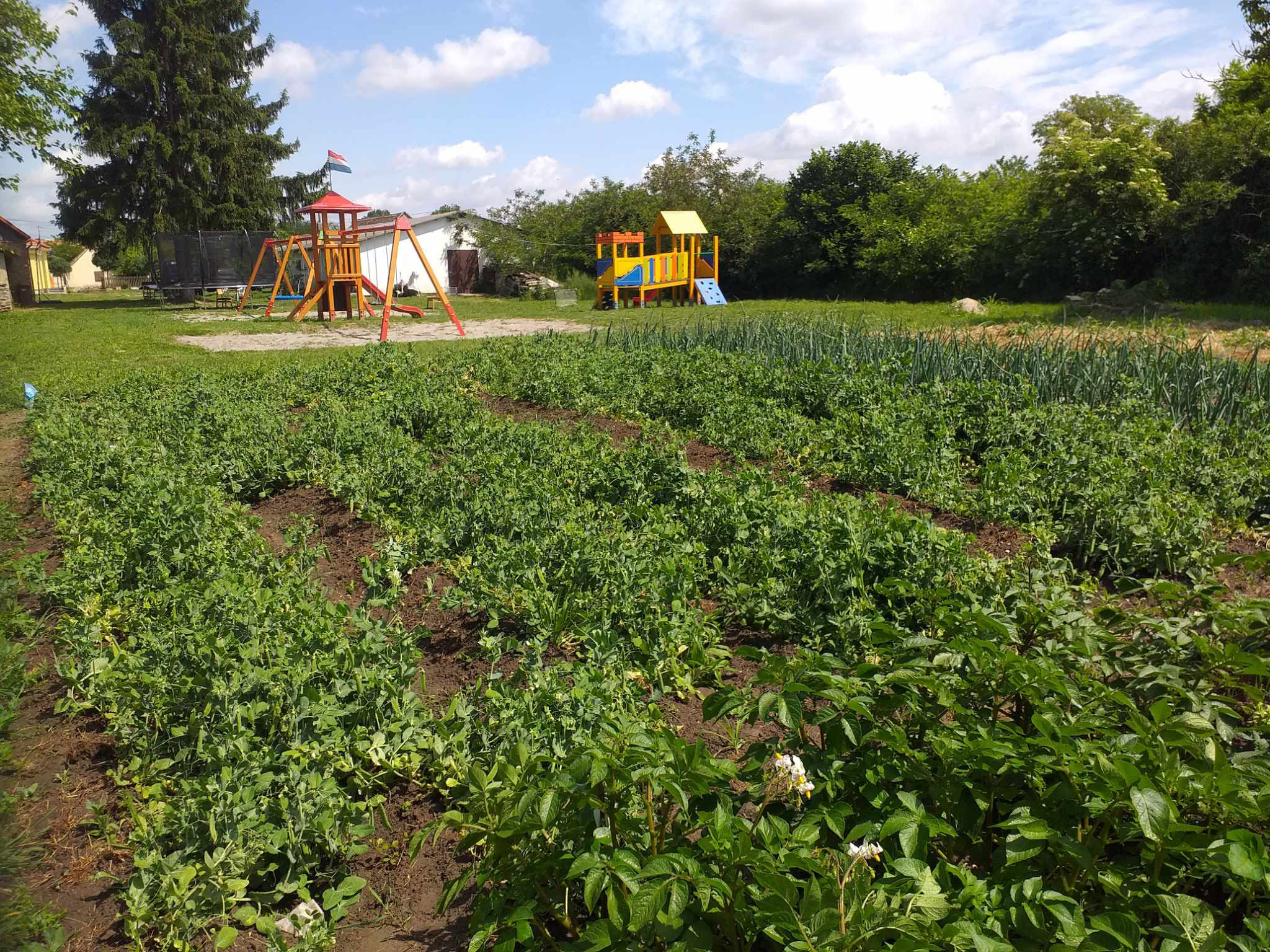 Az infrastrukturális fejlesztések 2024. május végéig tartottak. A terület 1650 m²-re lett előkészítve a hajtatott zöldségtermesztéshez, és egy új, 120 m²-es fóliasátrat is beszereztek. Az öntözőrendszer alkatrészei május elejére beüzemelésre kerültek, és az esővízgyűjtő tartályokat is kihelyezték a mintakertbe és a családokhoz.